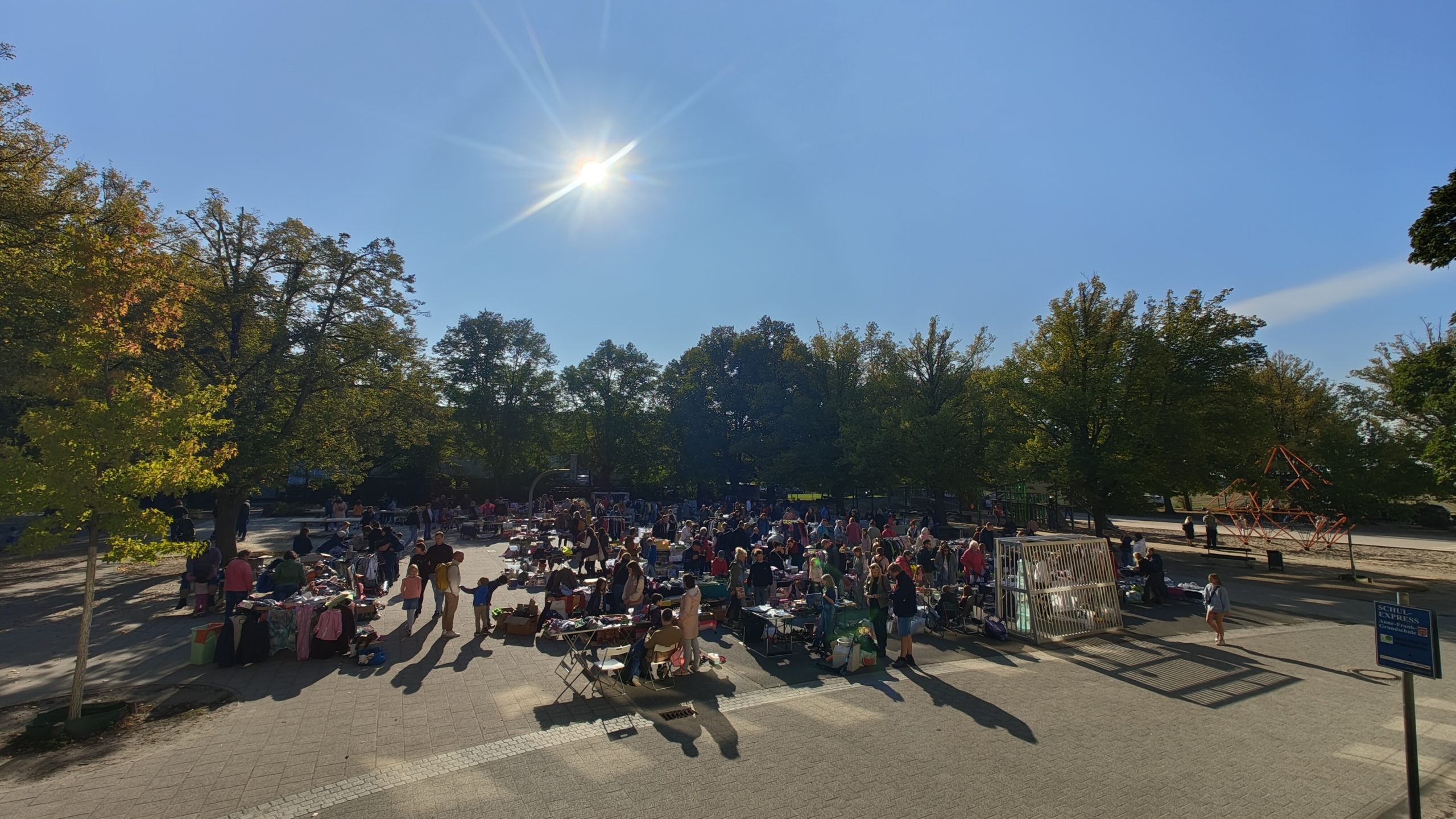 Der sonnige Frühling schenkte uns perfektes Wetter, als wir erneut den beliebten Familientrödelmarkt auf dem Schulgelände veranstalteten. Unter strahlend blauem Himmel füllten bunte Stände das Areal, an denen Eltern, Lehrer*innen und Nachbarschaftsbewohner ihre gut erhaltenen Fahrräder, Kinderspielzeug, Bücher und allerlei Kleinigkeiten feilboten. Die frische Brise ließ die bunten Fahnen und Luftballons fröhlich flattern, während das Lachen der Kinder die Atmosphäre lebendig machte.